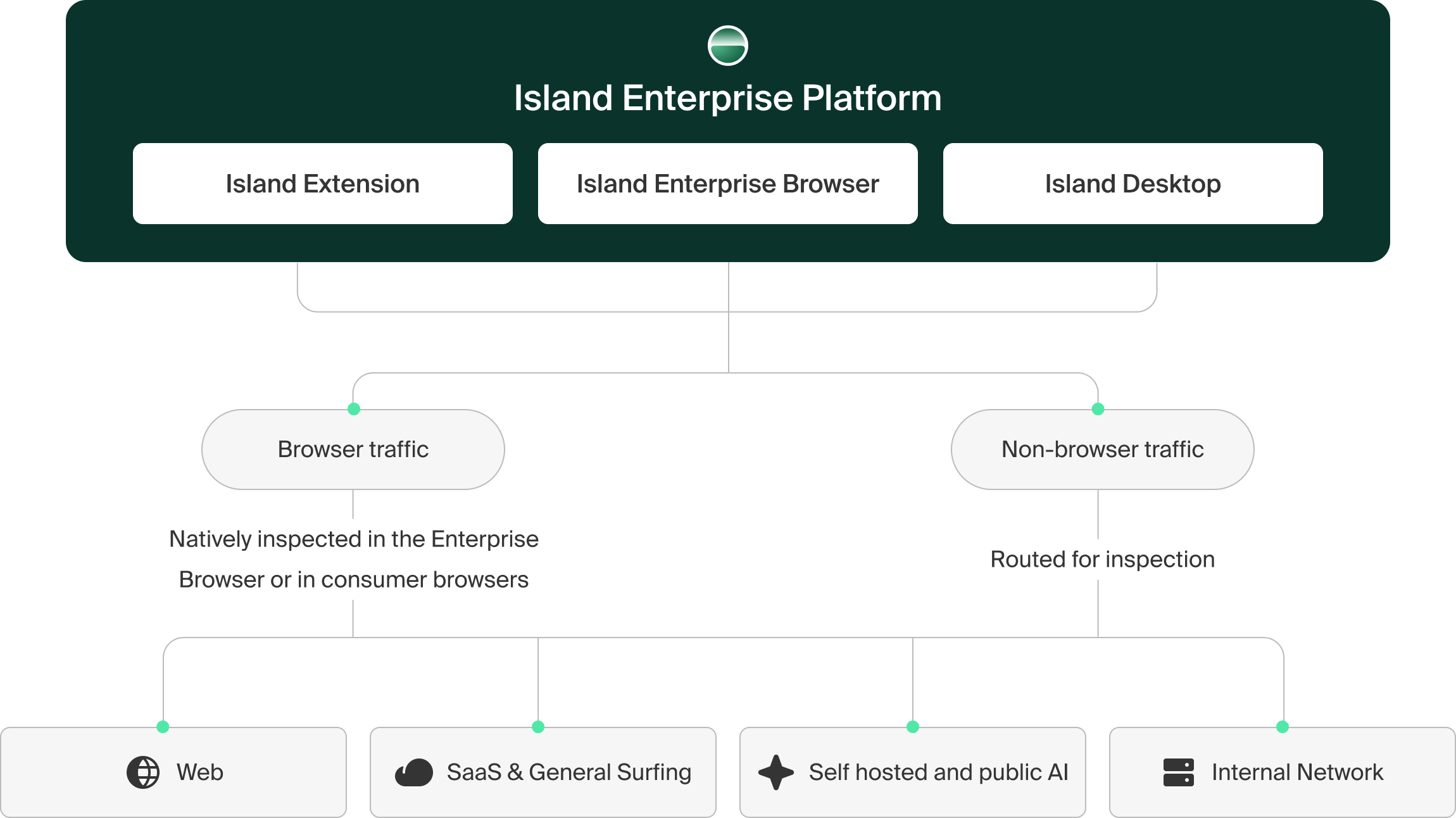 No traffic rerouting, no certificate gymnastics, no agent sprawl. Island deploys in days across managed devices, unmanaged endpoints, contractors, and third parties without disrupting a single workflow.