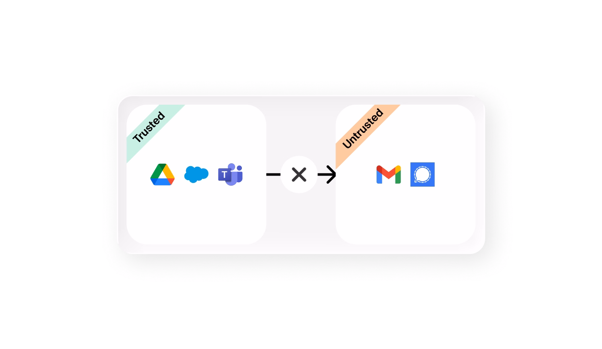 Define where corporate data is allowed to flow across browsers, desktops, AI services, and device channels. Inside the boundary, work proceeds uninterrupted. Outside it, data is contained by design.